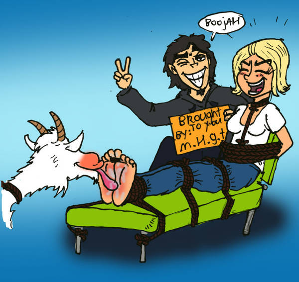 Dedé la Canaille intends to eliminate his enemies, the Kiekoboes, in a clean manner. His busty accomplice procures a goat and, at the cat’s urging, has it tickle the girl’s feet.