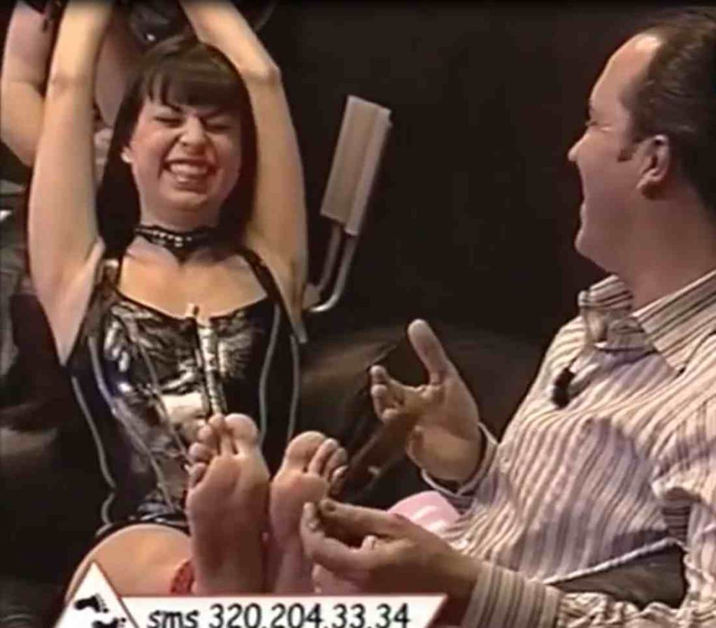 In a broadcast similar to this one, years later, Giada De Blanck undergoes a foot reading. A man starts tickling her by asking “You’re not ticklish, are you?” and she starts laughing.